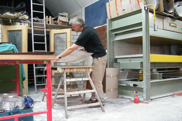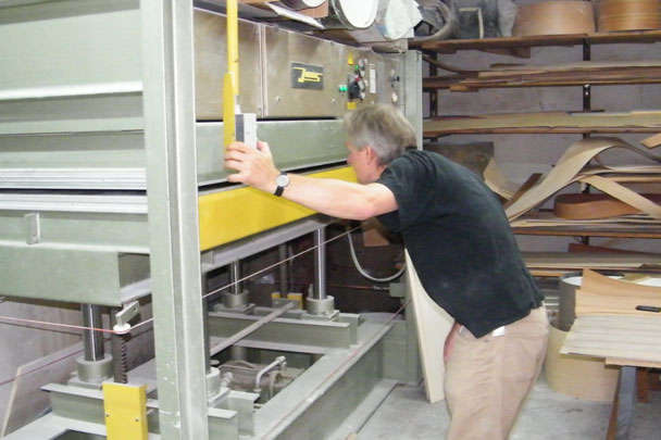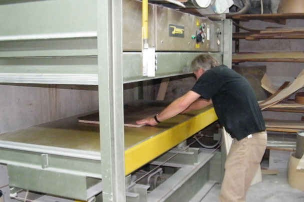 Hier ein kleiner Einblick in die Fertigung am Beispiel des Furnierens